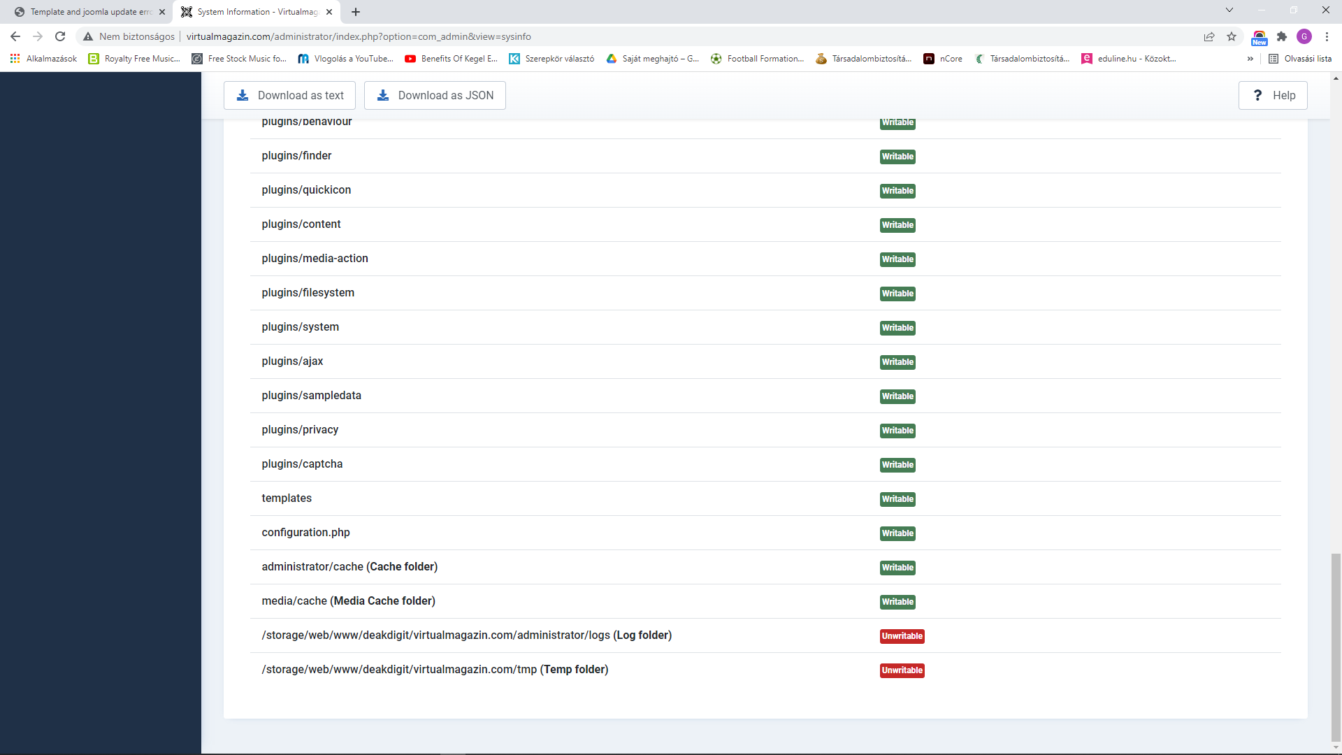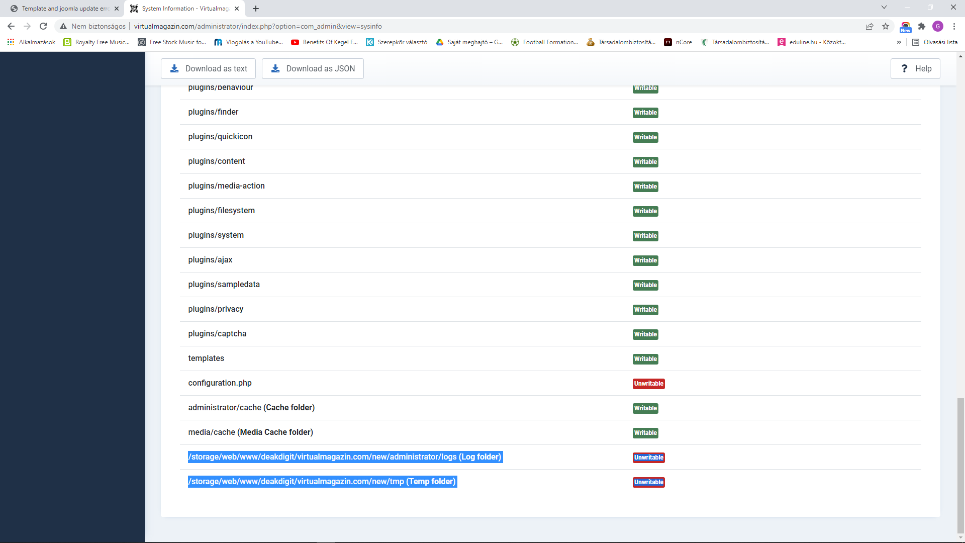 I set up this template on a subdomain new.virtualmagazin.com then I move it to virtualmagazin.com. I found in System Information/Folder permissions that both path of temp and log directory is still the subdomain's directories.