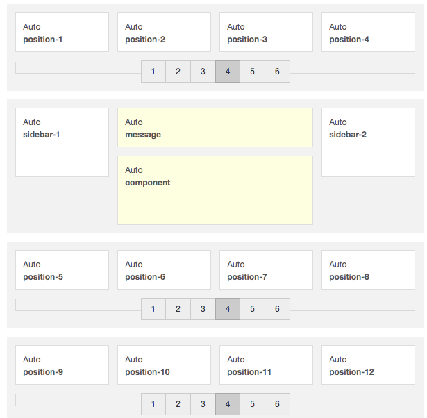 Now there's a difference in the col-sm and col-xs setting with the same number of positions (4 blocks).