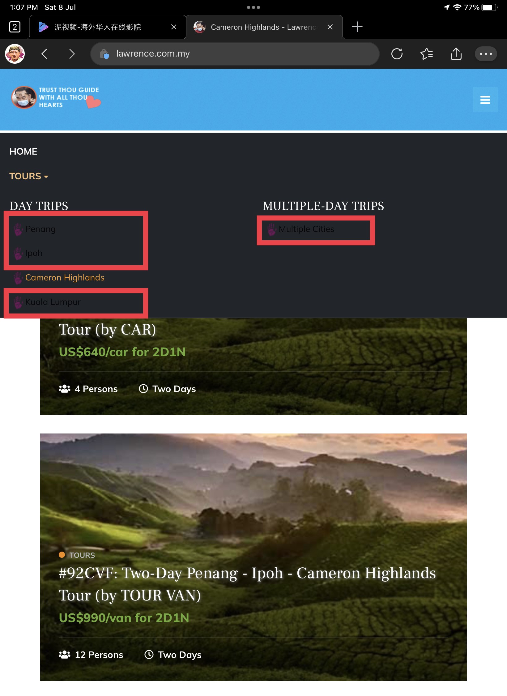 On small-screen devices such as iPhone and iPad (vertical), if I tap one of the sub-menu, the rest of the links will become black. It is then unreadable as the background is also dark.