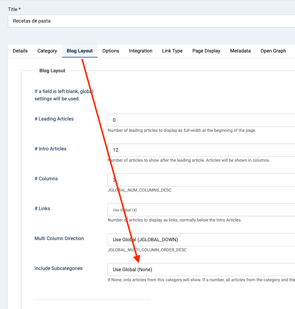 However, only Pasta category has articles, Carne has no article assigned and that's why nothing displayed there.