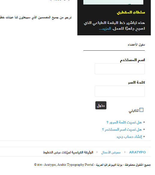The website: www.aratypo.net is published in beta version and we continue to RTLize it and to implement articles till the end of this year. In January 2012 we will be fully operational for the Arabic script and graphic design professionals; be tuned...