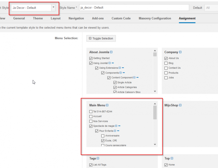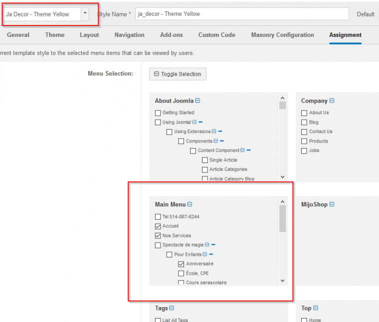 But if you want to assign JA Decor - Yellow template style to a specific page, i.e 'Accueli', then this page will have style of this Yellow style.