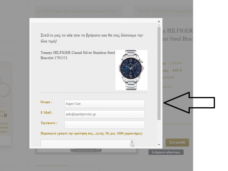 In produt page i press ask a question and it popus the fields. Works perfect on android and pc. In IOS the contact form is not working. you cannot scroll on it to make the question. Any idea how to resolve this matter? http://lepetitjewelry.gr/index.php/el/rologia/1791551-detail