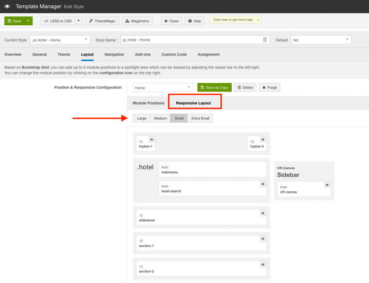 The problems really show up, however, when looking at the template through different devices, then the footer-menu items (following the template's default horizontal setup) totally scrambles any vertical association.