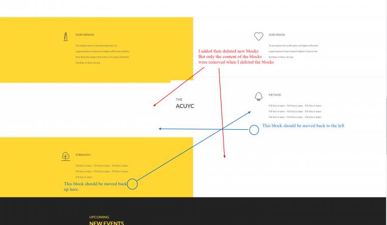 When updating the "our specialty" module with new content, or additional blocks. The styling changes when you add more than 4 options as expected. But when I deleted the additional options the space remained. And I don't know how to remove the spaces and return the original styling.