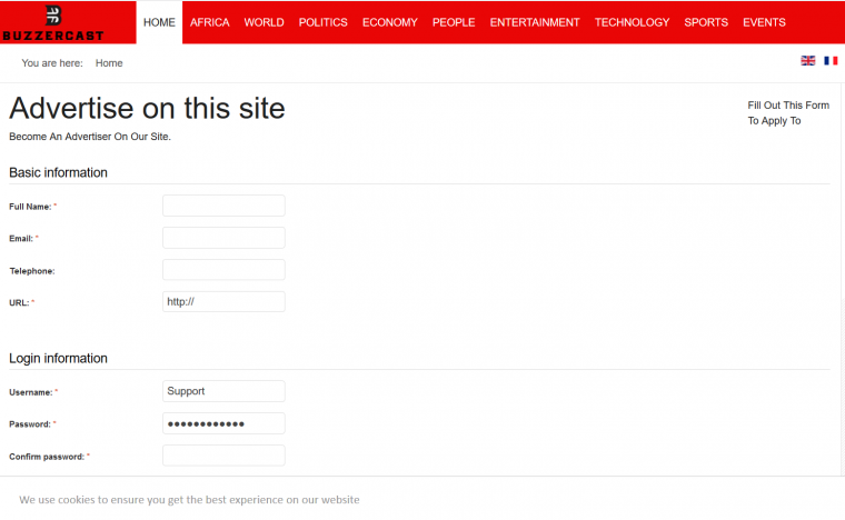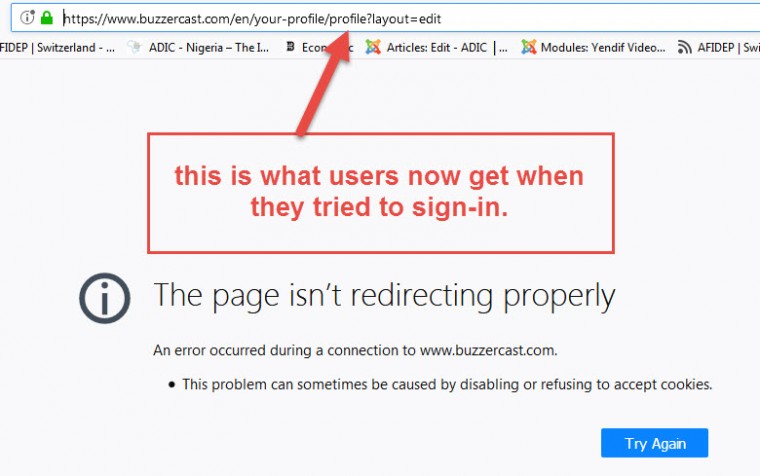 I just made a test, I logged in your site, from "User" icon top-right, and after login I was redirected to a blank page. That page is not visible because the "HTML" tag from source page is hidden: