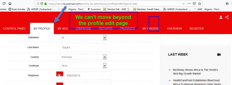 I can not replicate your issue, even if I am logged in your site and set page html tag visible, I can not see that menu Item - "MY PROFILE"