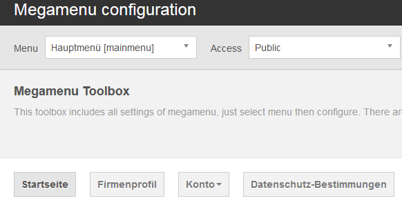 The issue may come from the language assignment of those menu items. If you check these items in the Hauptmenu, you're assigning it to GE language only.
