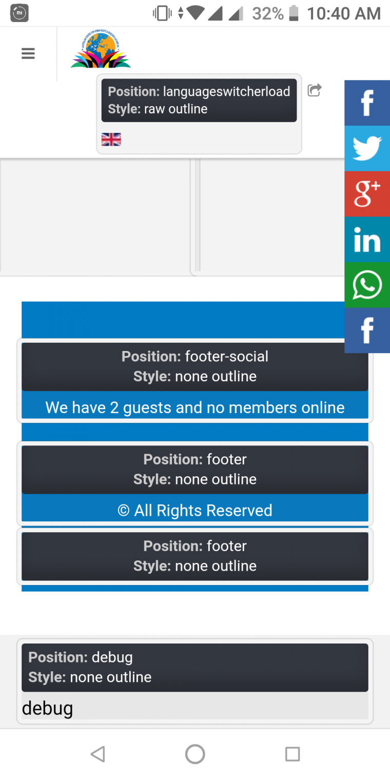 You can test what I have explained by publishing the Who's Online module which I have set to the Footer Social position which in theory should display for all layouts. If you then refresh the desktop you will see it displayed in the Footer Social positions as expected (attached screen shot 1) but on the mobile device you will see the Footer Social module position is (attached screenshot 2) .