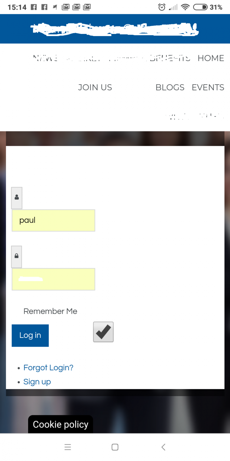 When created, it works fine on PC bu try to login from an android phone and when you click 'Log In', the Remember Me box (not formated next to words) gets ticked. It does not log in. When you press Log In again, the box unticks.