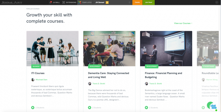 Hey, I just installed the website with the demo content of ja-sensei. What is missing in my installation is a section at the bottom, which shows a slideshow beginning with "popular courses". Whatsis it? And how can I enable it? On the ja real website it is shown.