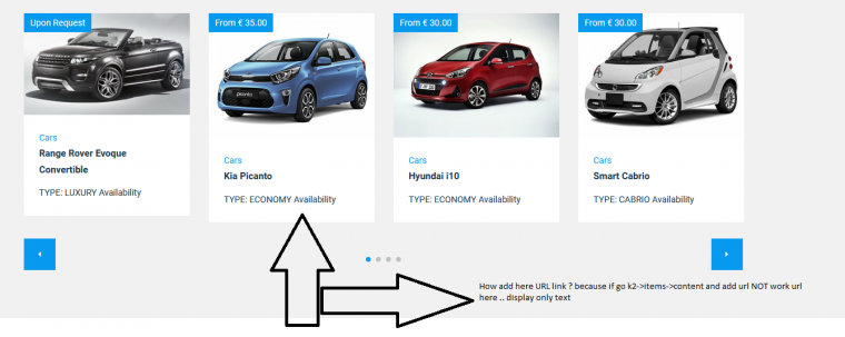 Can u please sent me screen because i dont understand go component -> k2 -> item -> for example open 50-smart-cabrio ang go in TAB content and insert url with button but not works
