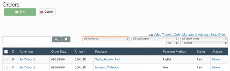 On the Orders page in AdAgency in Joomla there are no new orders either