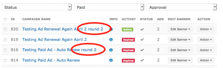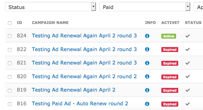 I set up a test to run an ad on Auto-Renew and it's not working properly or something.
