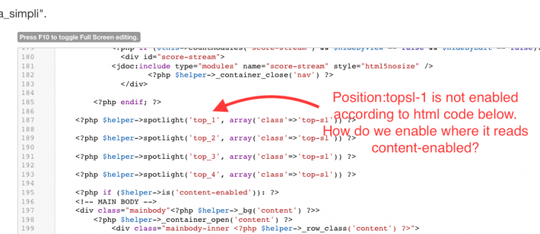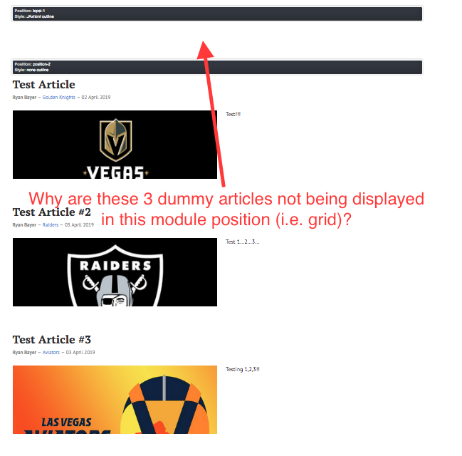 I think I found the found the problem to why the gird in Position:topsl-1 is not displaying on the homepage of our site where the three dummy posts are supposed to go. See below.