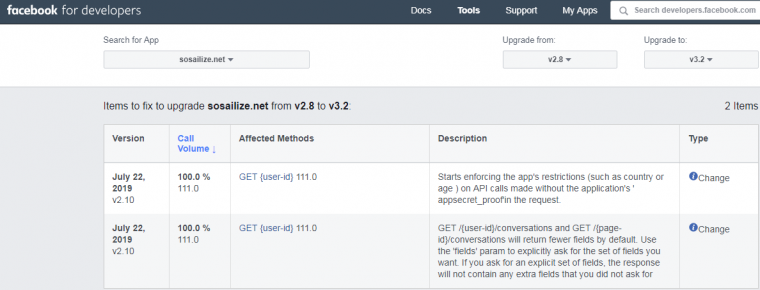 i received an alert from facebook, about "Graph API v2.8 will be deprecated on Apr 18, 2019. Please use the API Upgrade Tool to understand how this might impact your app".