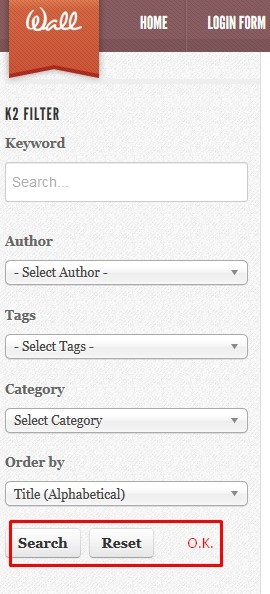In the megafilter module the "Search" button is missing. The search does not start automatically. However in K2 Search it works.
