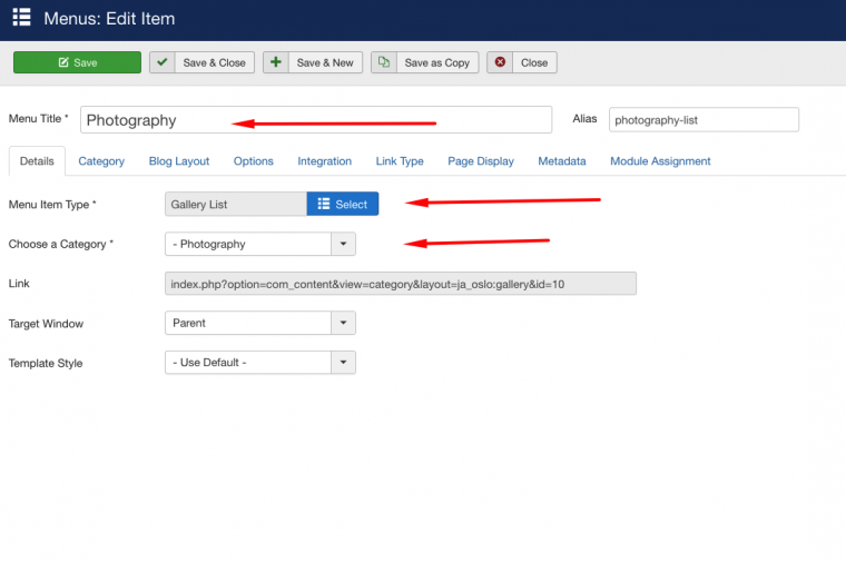 Unfortunately, the documentation provides the explanation for the video page but not the photography page. Could you please provide information about how to build the photography page? Module settings, Advanced settings ... I'm guessing there is a special Alternate layout.
