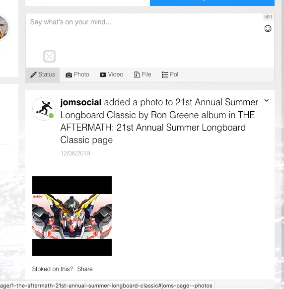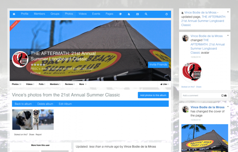 I don't see your activity in the stream anywhere. Did you delete it after posting it? I just posted a new photo to this album and nothing shows in the activity stream: https://www.pacificbeachsurfclub.com/under-the-tent/photos/album?albumid=161&pageid=1