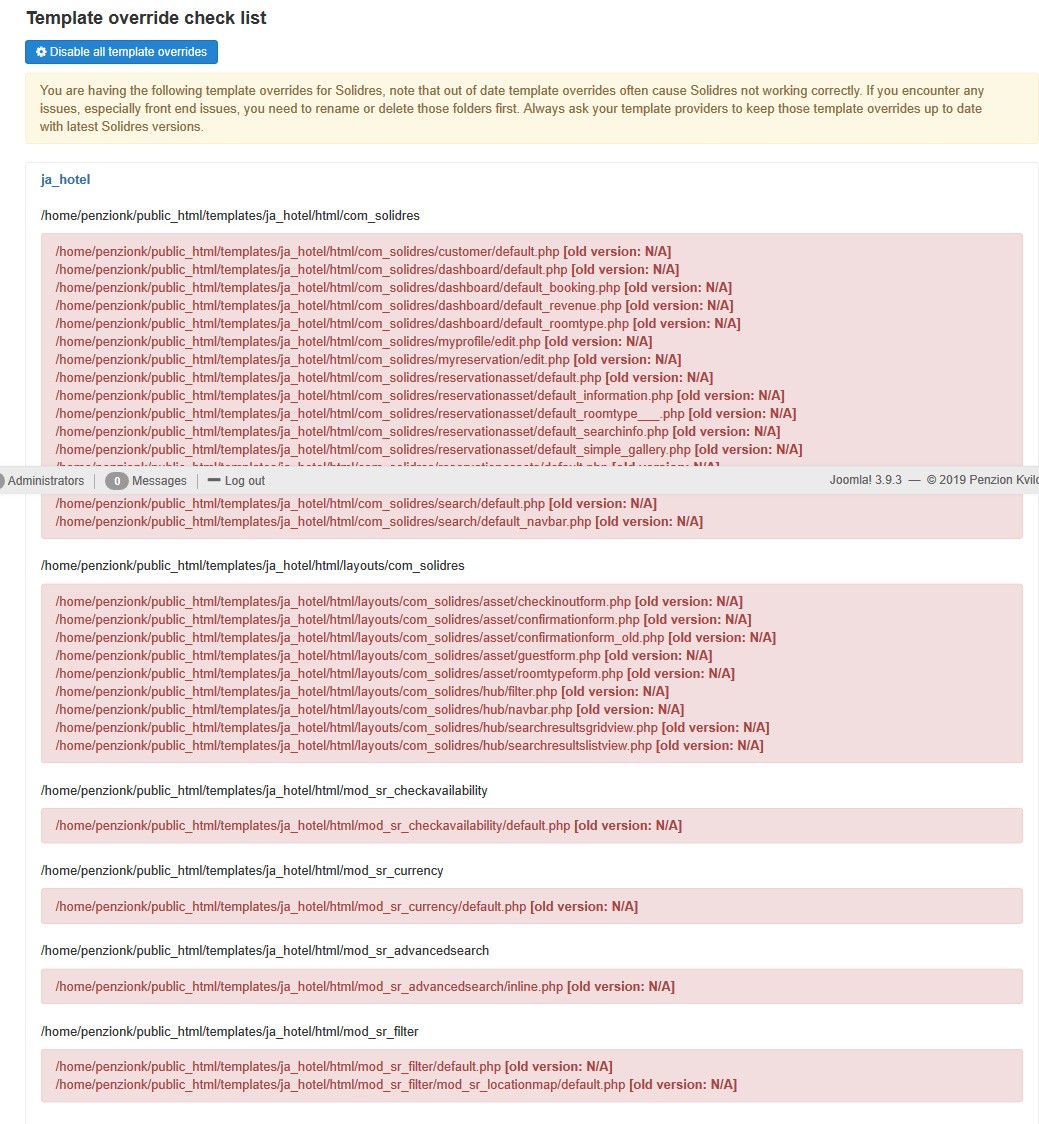 4/ Solidres / reservations tab - table header Total amount is not total to be payed, but without tourist tax. Solidres writes: Thank you for your info, we've checked and found that your template is having out of date template override for Solidres which means it is not compatible with latest Solidres version.