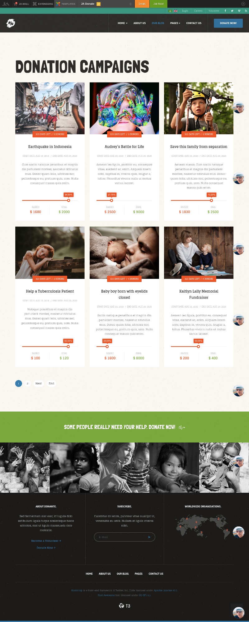 I have download and install quickstart of Ja donate. But the JA donate campaigns does not appear to enable visitors to donate. Attached screenshots. Thank you for your help.
