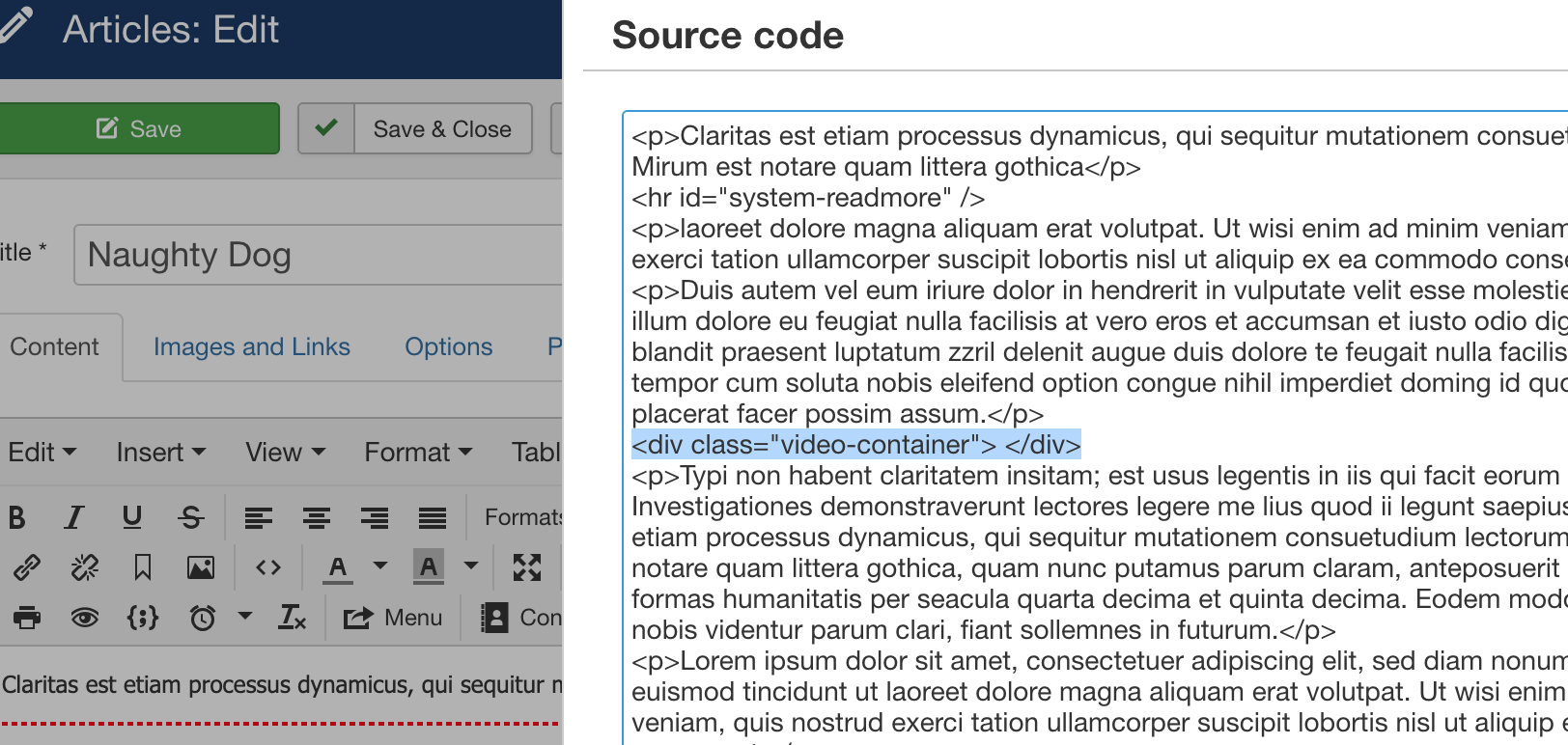 When I look at the source code (Playmag - Quickstart installation), I only see here <div class="video-container"> </div>, but not embeded code for video.