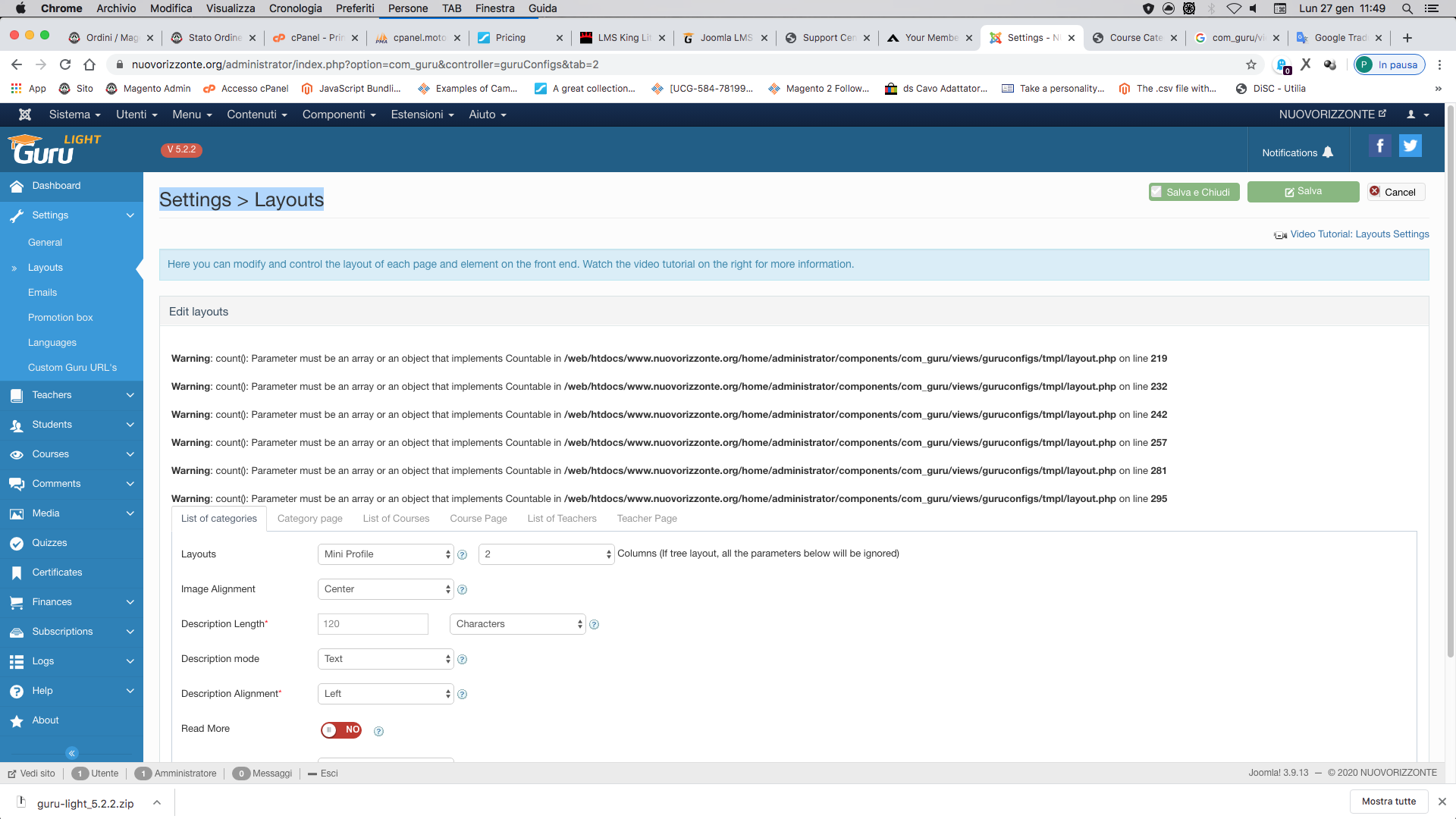 Hello, As you can see in the attached image, in the layout selection there are various php errors. I ask for support to resolve these errors. Thank you