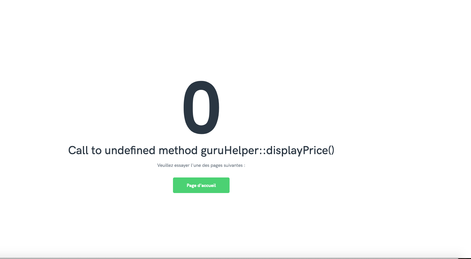 Unfortunately it doesn't work when you click on it -> It shows an error page "Call to undefined method guruHelper::displayPrice()".