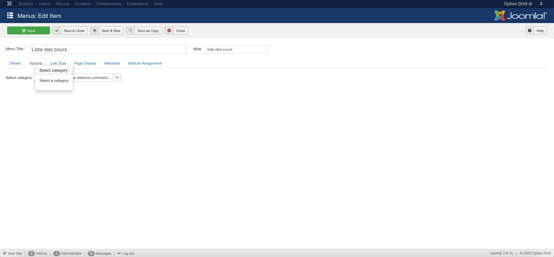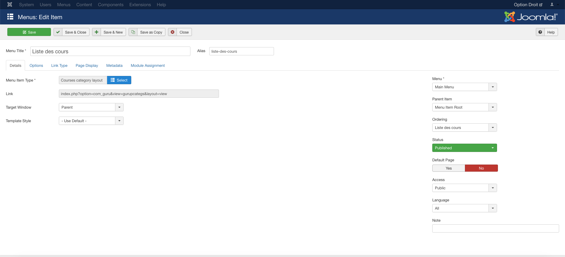Another question : I tried to create a link in the main menu, leading to the "Courses category layout" of GURU light.