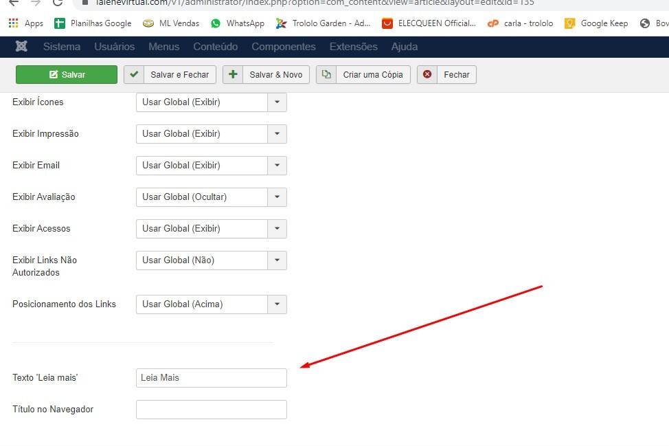 When I change the read more option in the administrative, it appears part of the article title to read more.