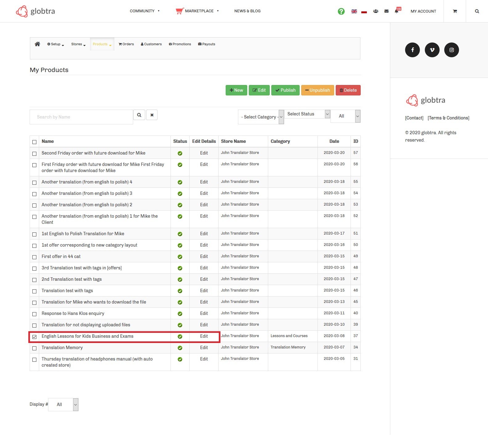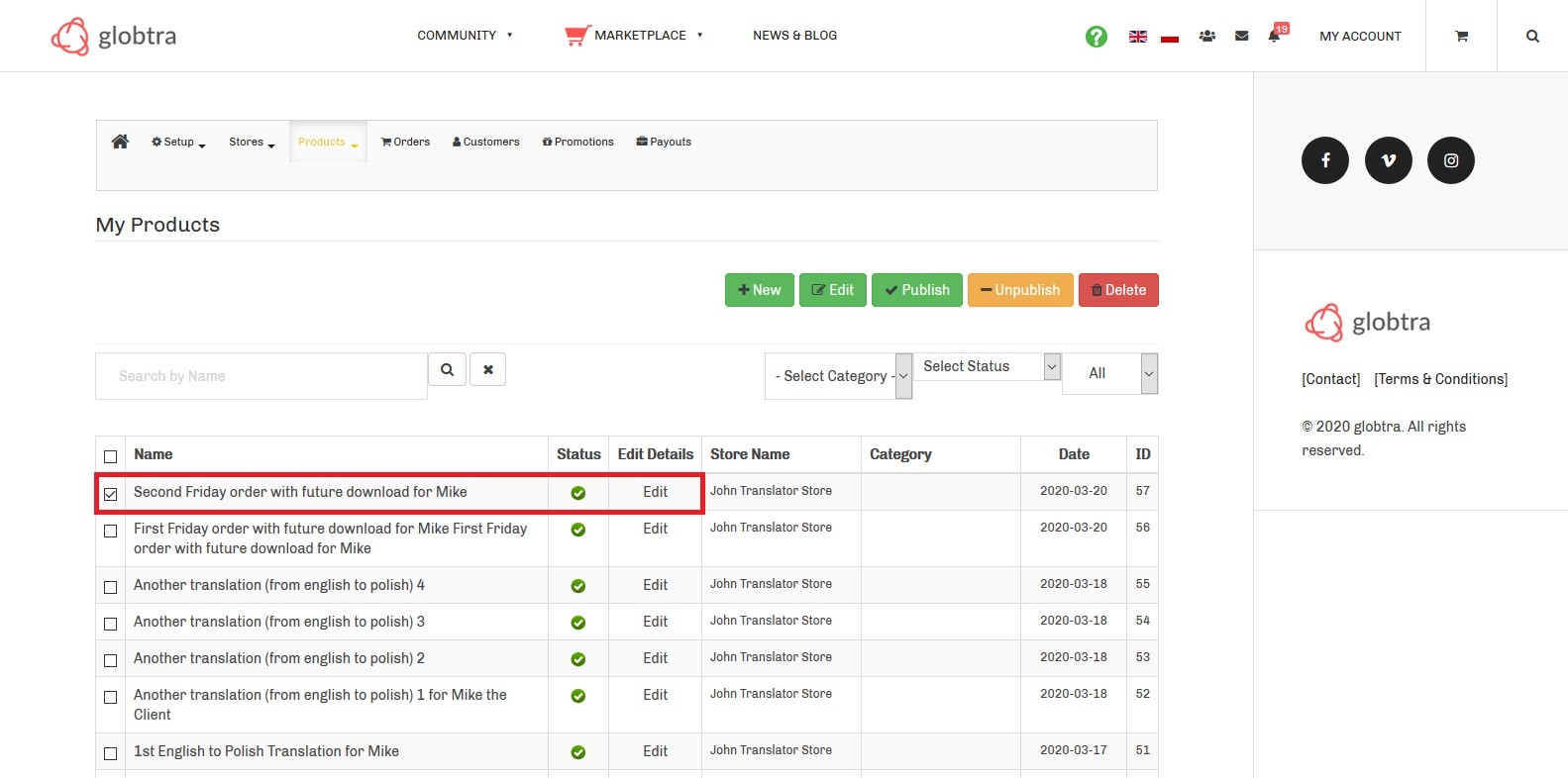 Could you share the URL of page where I can see these products to edit from frontend?