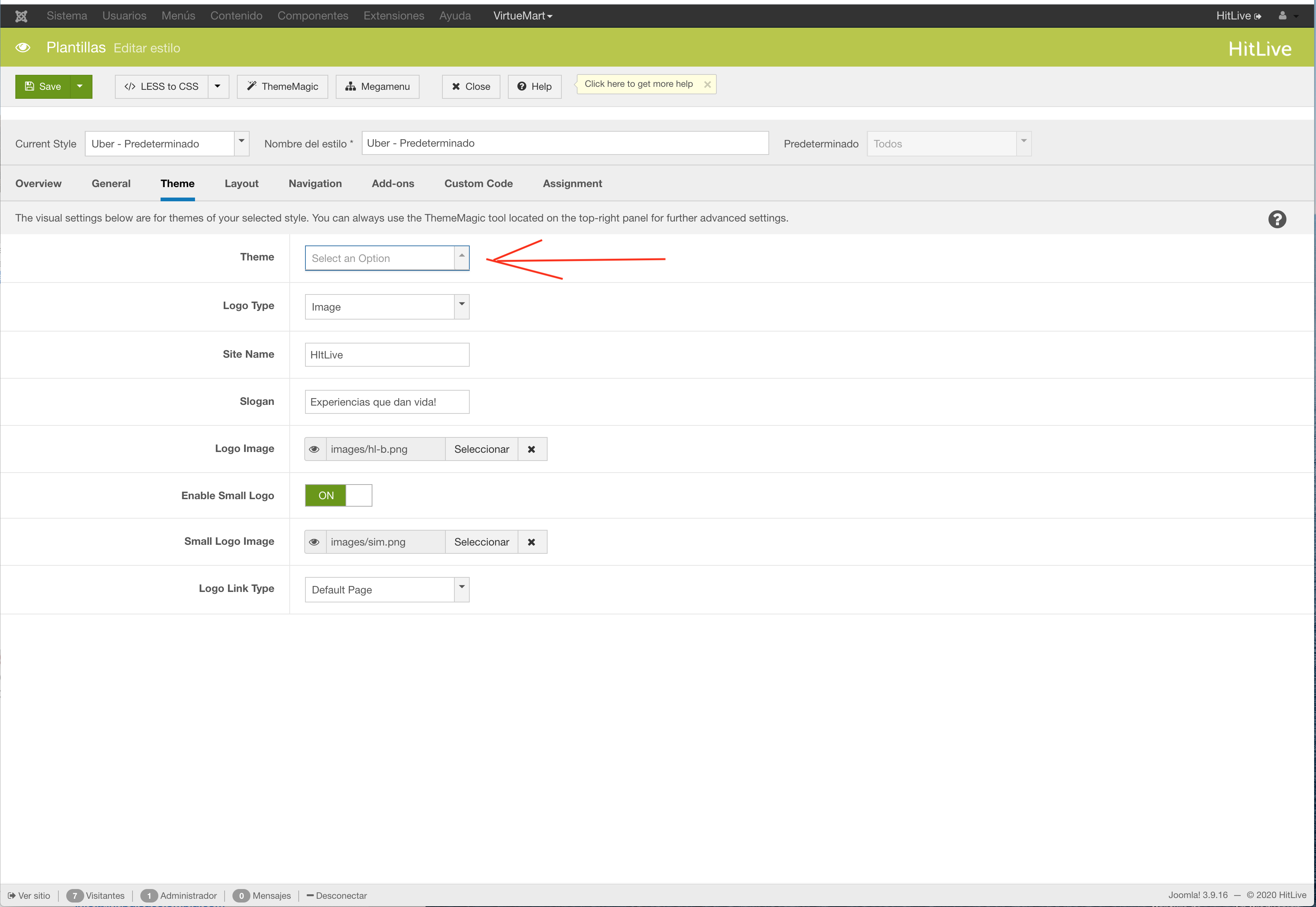 A few days ago we updated the Joomla version from 3.9.14 to 3.9.16, but we found that now the Theme cannot be selected in the Uber template, since it does not show the options.