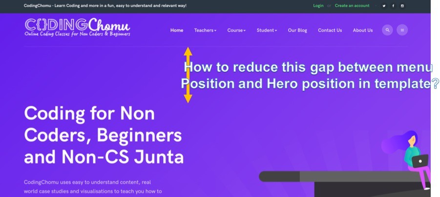 I wanted to know How to remove space between Menu and Hero position as shown in figure.