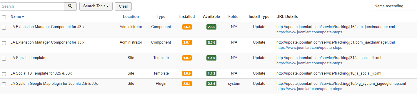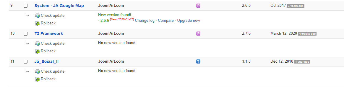 JA Extension manager (btw - typo in the spelling of Extension) showed up and updated JA Extension Manager but nothing else shows up.