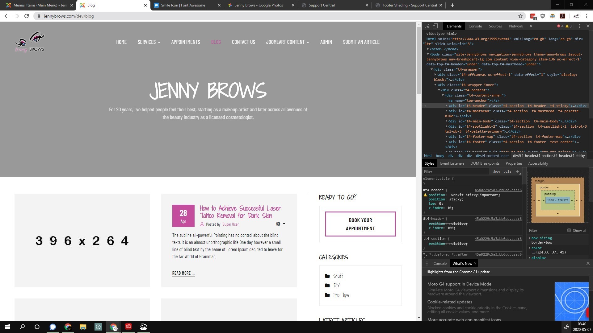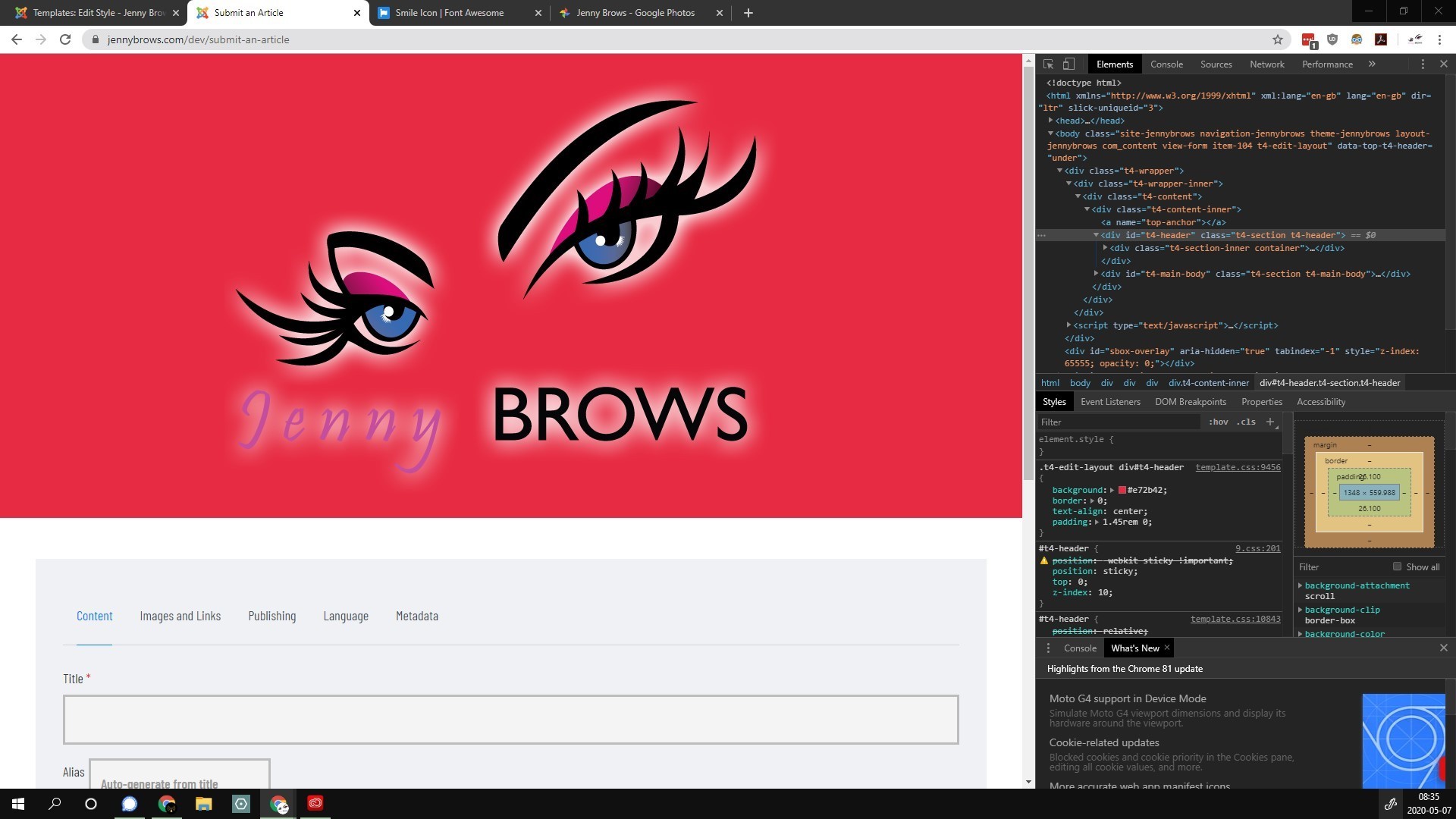 Joomla only show the Main content on the Edit article page, this is why the header is not loading and logo is showing big.