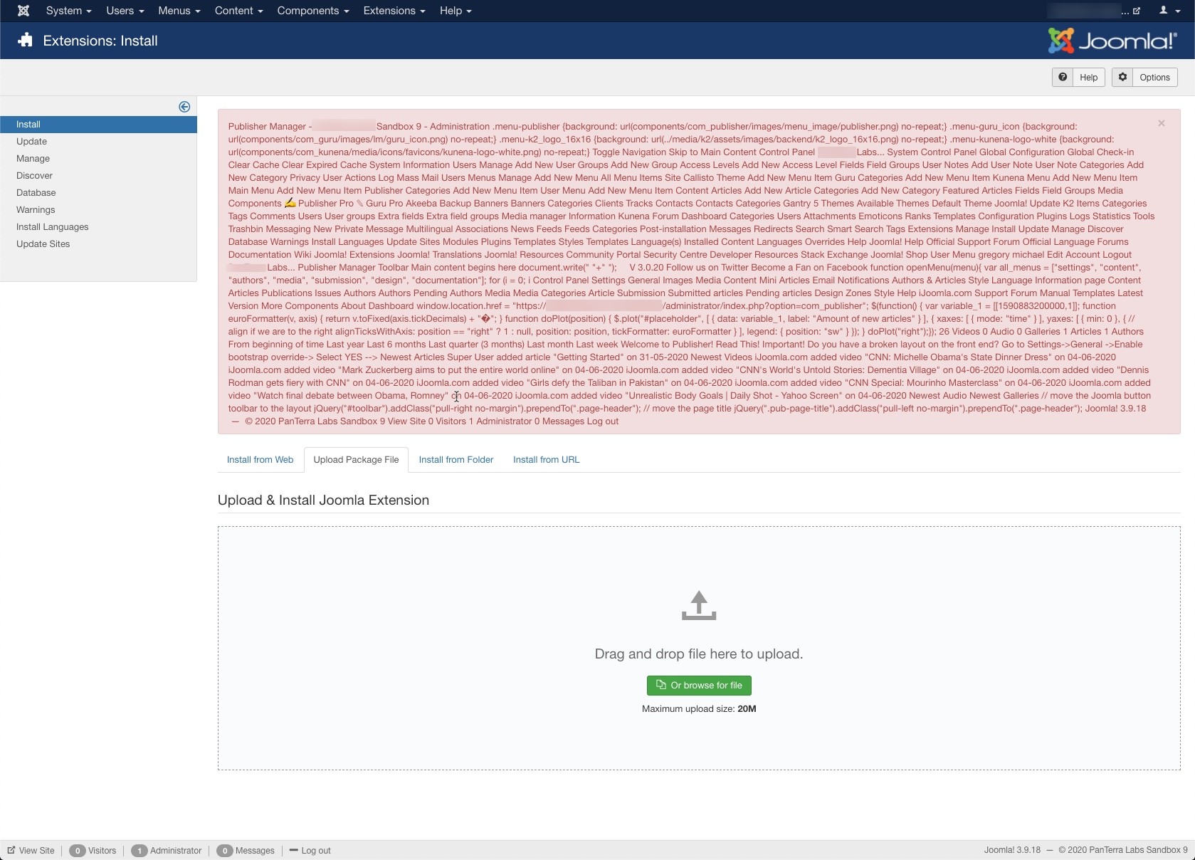 I'm installing Publisher Pro in Joomla! 3.9.18. I'm getting the attached error which appears to be CSS related with some php.