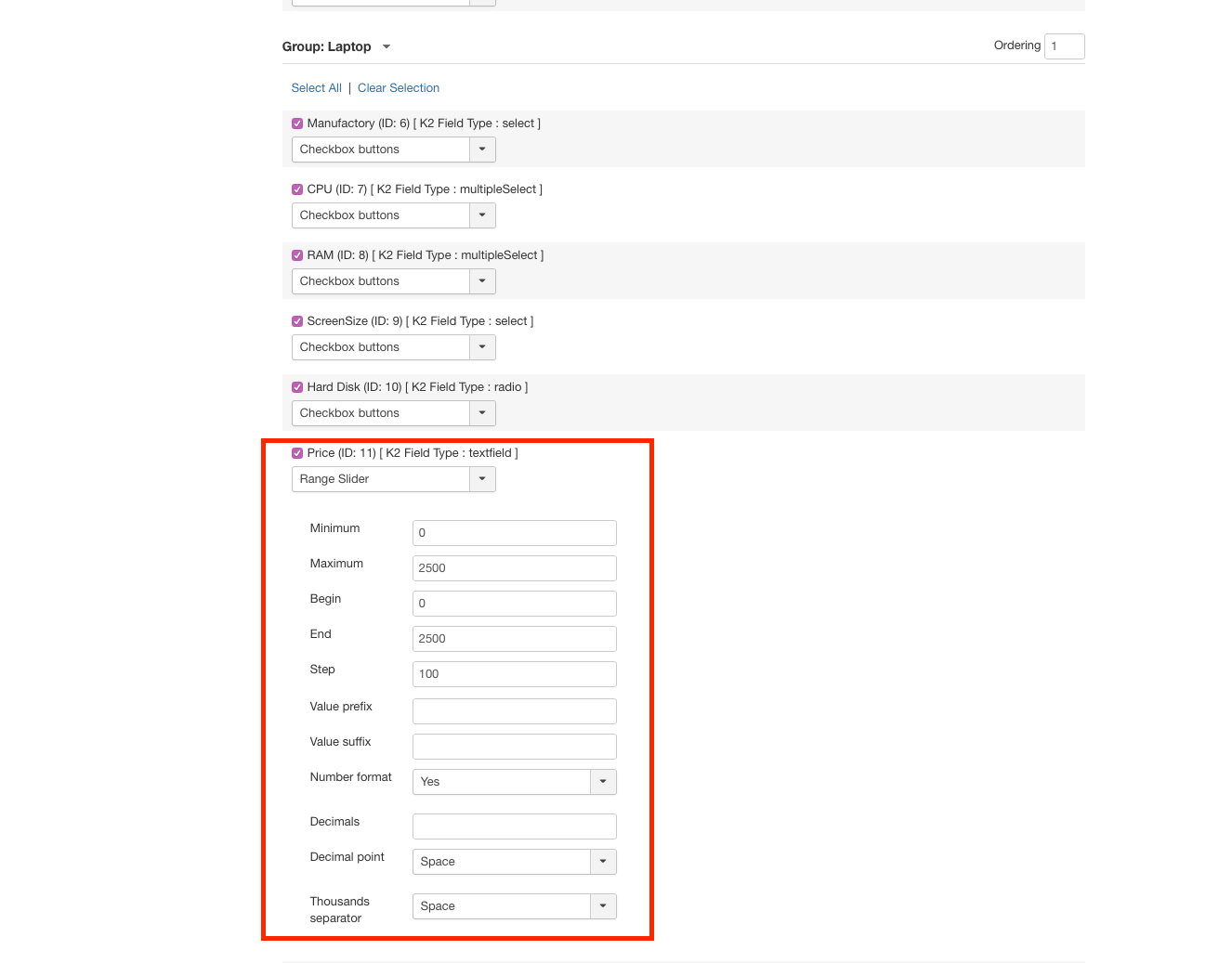 However in all the extrafield types I don't see any numeric variables, where I could enter a price and then filter through a sliding filter.