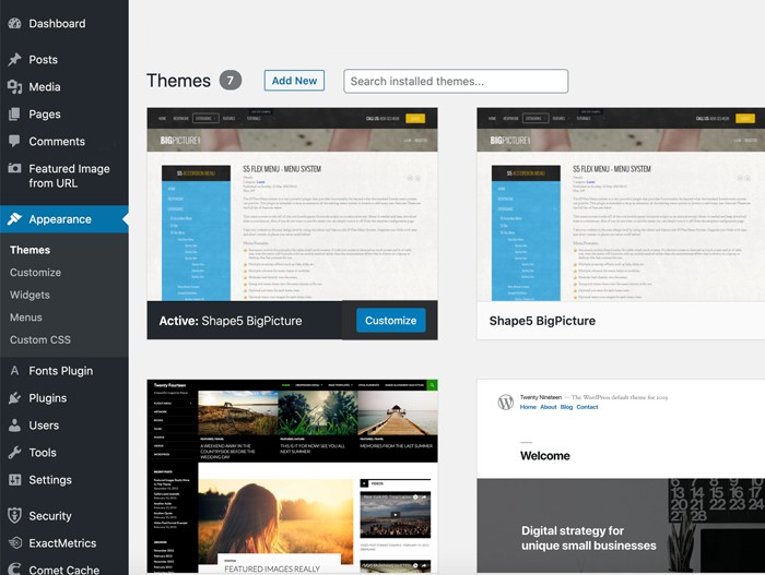 With the Shape5 Big_Picture theme installed on my WP site, I am not able to pull up the "S5 Theme Options" in the Appearance section. All I see available is: