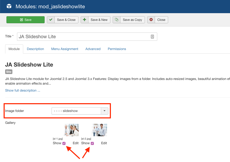 You just need to add images into the image folder you want to show in this JA Slideshow Lite module.