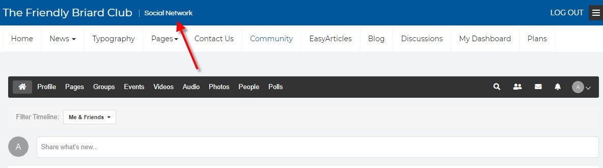 By default it will show the title: The Friendly Briard Club | Social Network