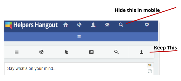 I would like the mobile icons in the header to the right of the logo to disappear the same as the search box does. Maybe use the same code as the header search box. That would also create a dedicated box for the logo, (would be nice if the logo could be centered). I attached a image of the issue.
