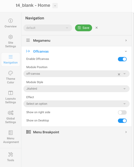 If you use T4 based template, you can set to show off-canvas menu button on desktop and by default, it opens on the left side already:
