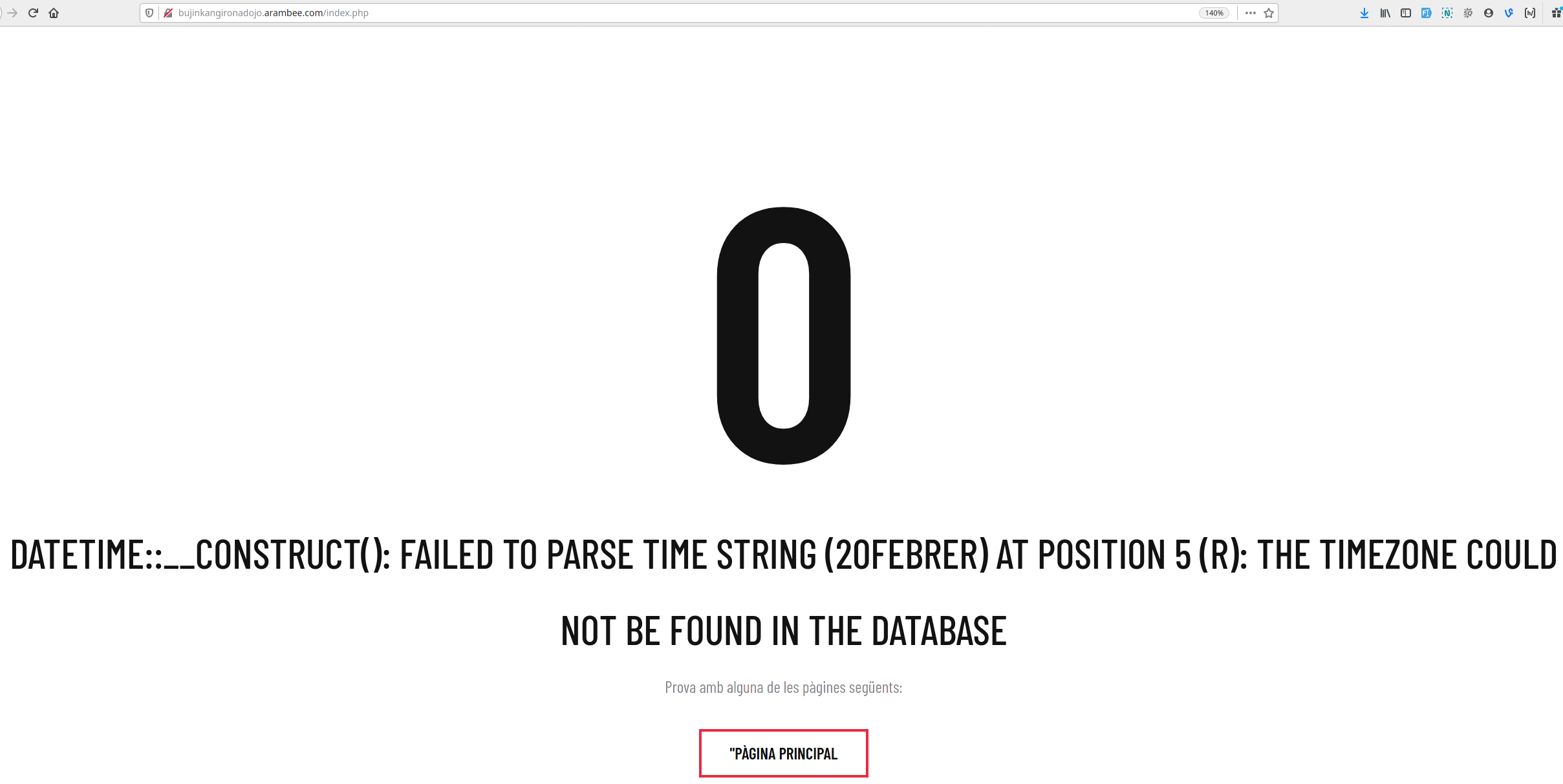Hi when I set the default language to catalan I got: DateTime::__construct(): Failed to parse time string (20febrer) at position 5 (r): The timezone could not be found in the database