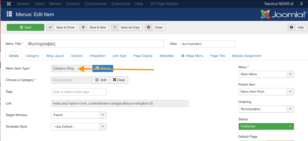 Now, when you click any article that belongs to 'Φωτογραφίες' category like 'Θαλάσσιος κόσμος', it will work well.