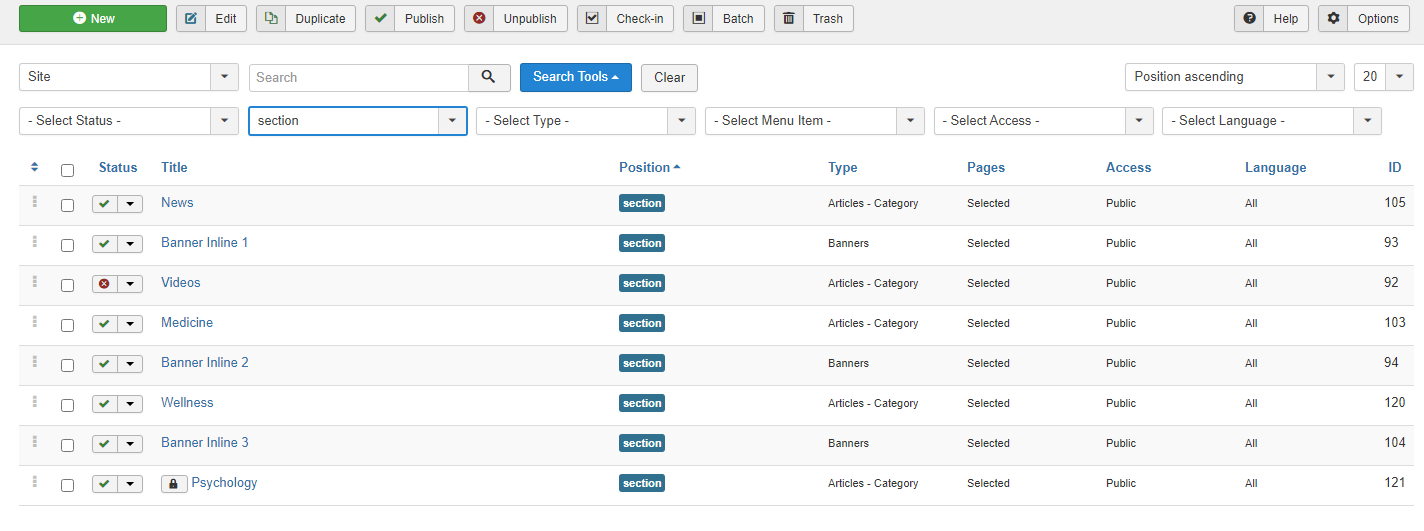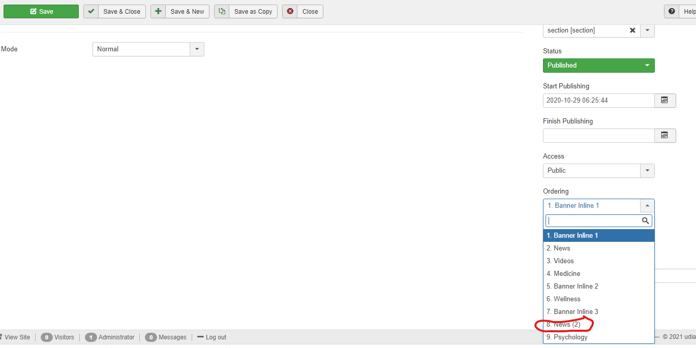 Hello, The modues of section, there are only 8 items, but in the ordering, there is 9 items, there is a "news2" item, how can I remove "news2" item? Thanks!