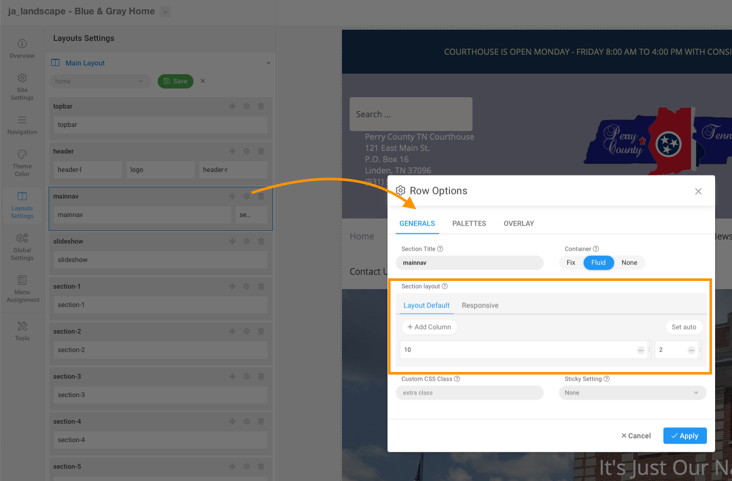 However, there are more menu items in the main navigation on your site, if you keep the 'container' of this mainnav block to 'Fix', there is not enough space to show all items on 1 line so I also change the 'container' to 'Fluid' as above screenshot.