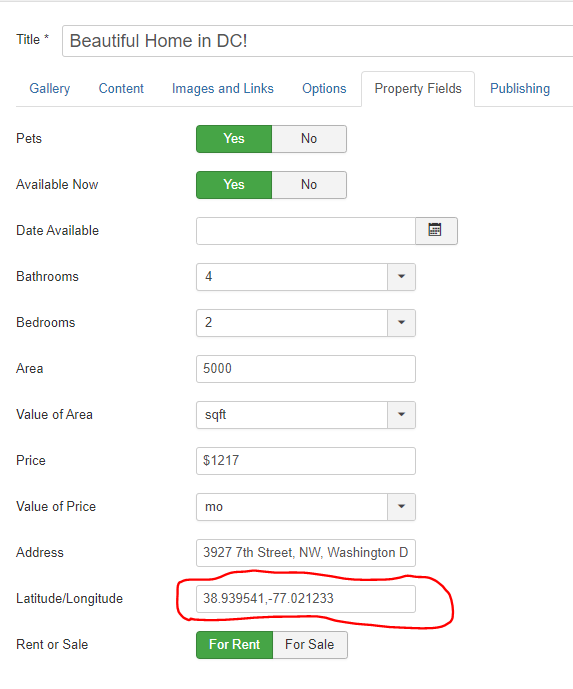 I can't figure out what I'm doing wrong here. I set everything up correctly including the lat/long and when I click on the property it points to a different location on the map. Please help 🙂