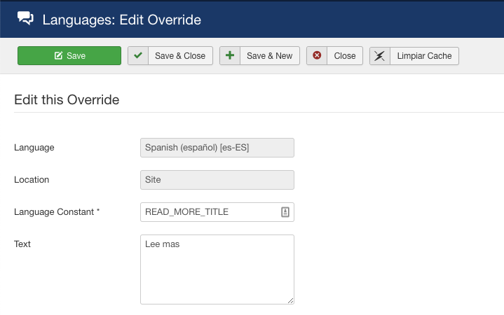 To change the readmore text, you can override this language constant: READ_MORE_TITLE