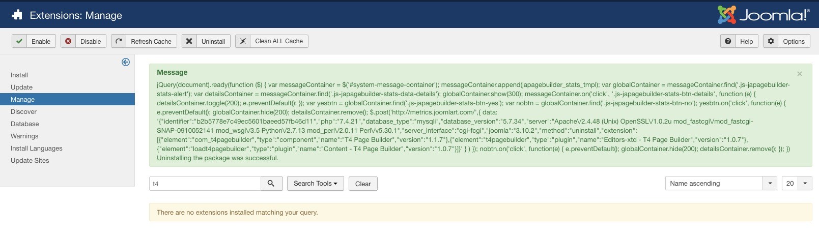 I will try again maybe some element from T4 was left on the website/database when I clean it manually, but I’m pretty sure I take out everything....