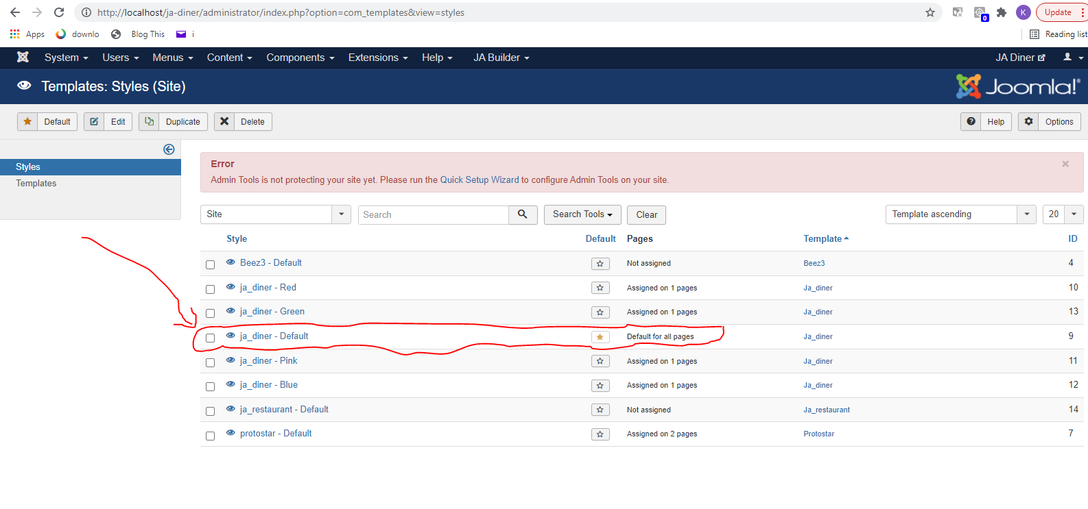 1- I installed JA Diner template and JA ACM Module on localhost, but cannot see JA Extra Fields tab when editing ACM module from backend.